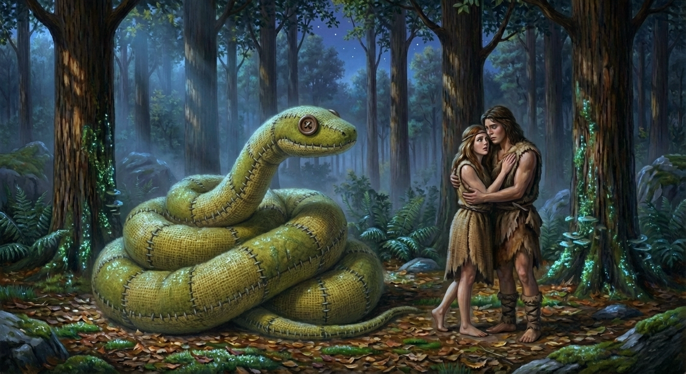 原文:A serpent coiling near a man and a woman.