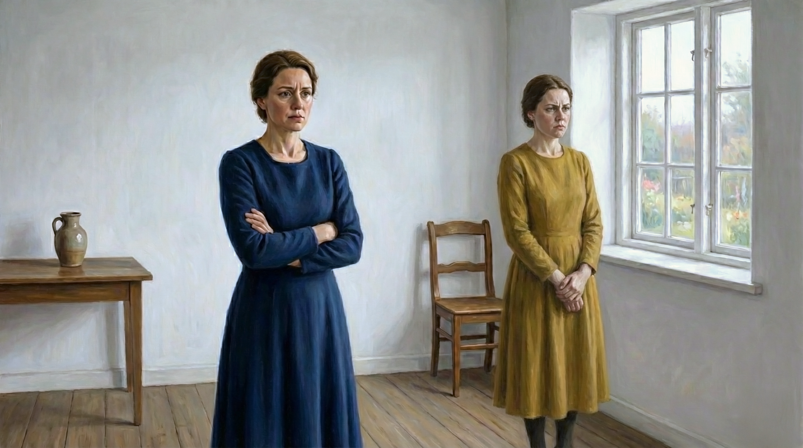 • 堂々巡りの対話 「2人の女性」が会話を続けるように、自分の中での対話(自問自答)を繰り返します。具体的な解決策が見つからないまま、会話だけが続くような状態に陥りやすいですが、それを続けることで有意義な可能性を見出すこともあります,。