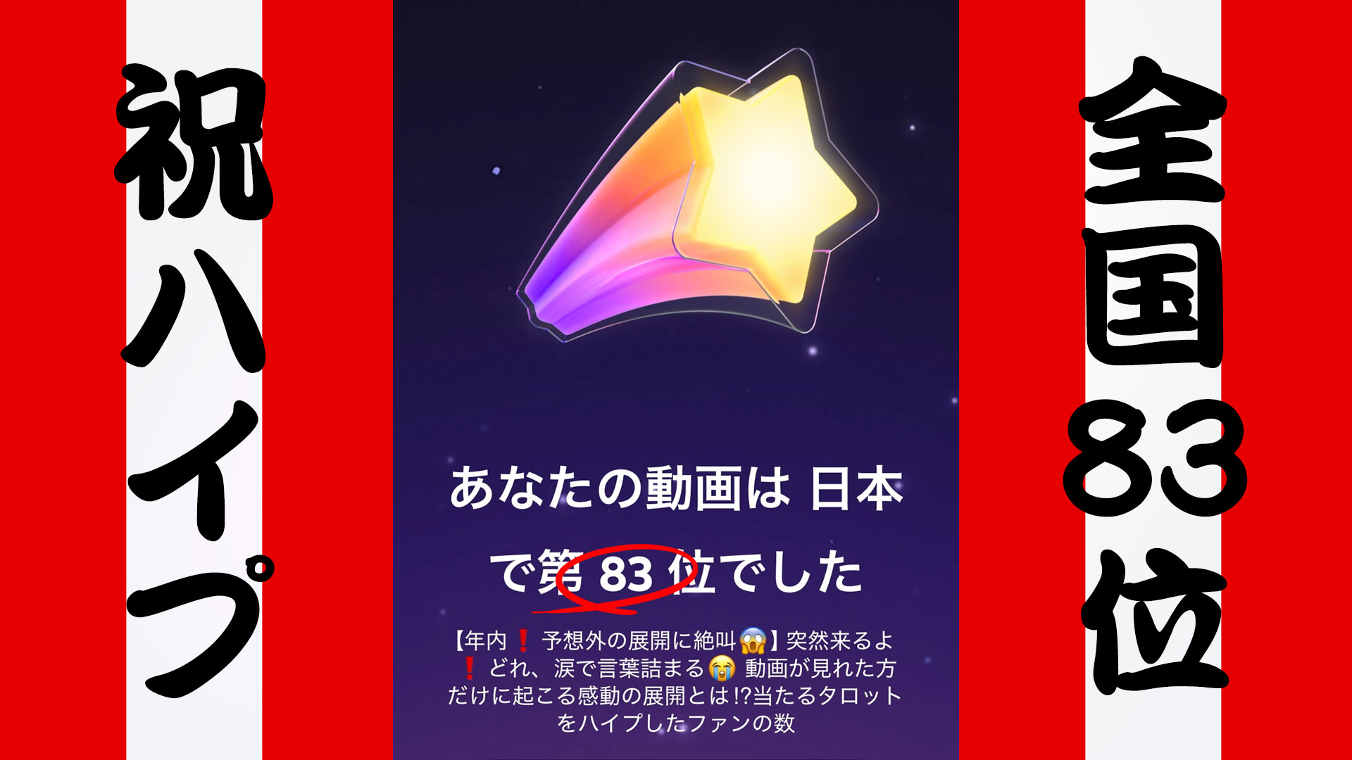 YouTubeの応援指標「ハイプ」にて、当チャンネルの動画が 全国83位 を記録しました。